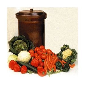 Make natural nutrition-packed sauerkraut and pickled vegetables with this stoneware crock pot from Germany! Through the years, sauerkraut has been recognized as one of the healthiest foods, and was even used on sailing ships to protect sailors from scurvy. Recently in the news, sauerkraut and pickled vegetables fermented the natural way with lactic acid fermentation are being credited with correcting bodily imbalances of intestinal flora, leading to problems including acid reflux for which doctors often prescribe harsh antibiotics. Natural lactic acid fermentation is one of the oldest and healthiest means of food preservation. It allows natural, beneficial bacteria to perform a fermentation process in which vegetables develop a pleasantly sour taste and remain rich in vitamins and minerals. Lactic acid fermentation is the only method of preservation that retains all the natural plant ingredients while improving the quality, taste and aroma. These beautifully crafted stoneware crock pots from Germany come complete with pot, lid, weighing stones, and instructions.